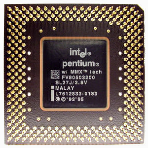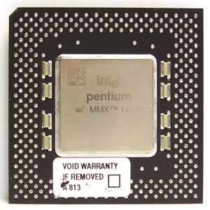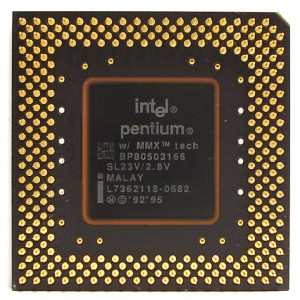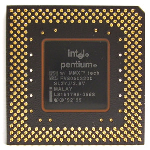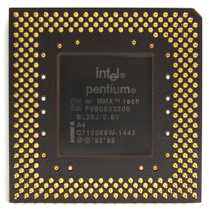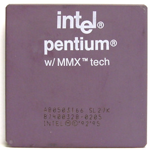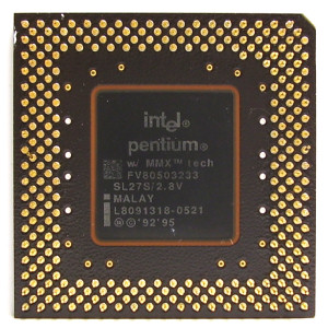 Markteinführung der Intel Pentium MMX (Multi-Media-eXtensions) Prozessoren war am 08.01.1997. Diese wurden in der Desktop-Version mit Taktraten von 166 MHz bis 233 MHz angeboten. Der P55 nutzt als Schnittstelle zum Mainboard den Sockel 7.