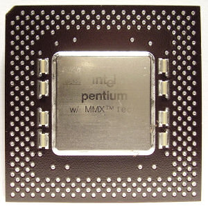 Markteinführung der Intel Pentium MMX (Multi-Media-eXtensions) Prozessoren war am 08.01.1997. Diese wurden in der Desktop-Version mit Taktraten von 166 MHz bis 233 MHz angeboten. Der P55 nutzt als Schnittstelle zum Mainboard den Sockel 7.