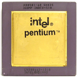 273-pin CPGA P5 4 60 MHz 60 MHz nein 64/32 Bit 16 KB (8/8) 3.100.000 Bi-CMOS 0,8 µm 5 Volt SX835 06/1994 ja