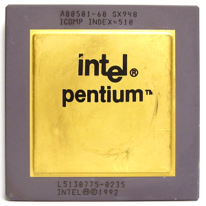 273-pin CPGA P5 4 60 MHz 60 MHz nein 64/32 Bit 16 KB (8/8) 3.100.000 Bi-CMOS 0,8 µm 5 Volt SX948 07/1995 nein